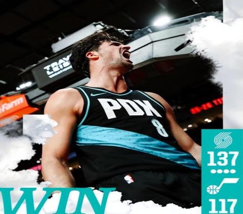 NBA常规赛继续进行,开拓者队今天坐镇主场,迎接爵士队的挑战。近期开拓者状态出色,首节就砍下36分,取得了两位数的优势。第二节开拓者又是里突外投,半场将分差拉开到21分。易边再战,爵士队也是有心无力,虽然火力有所提升,但依旧防不住开拓者,最终开拓者队137-117大胜爵士队。杨瀚森老大哥,场均25+7+7成巨星,你把5500万合同打成白菜价。